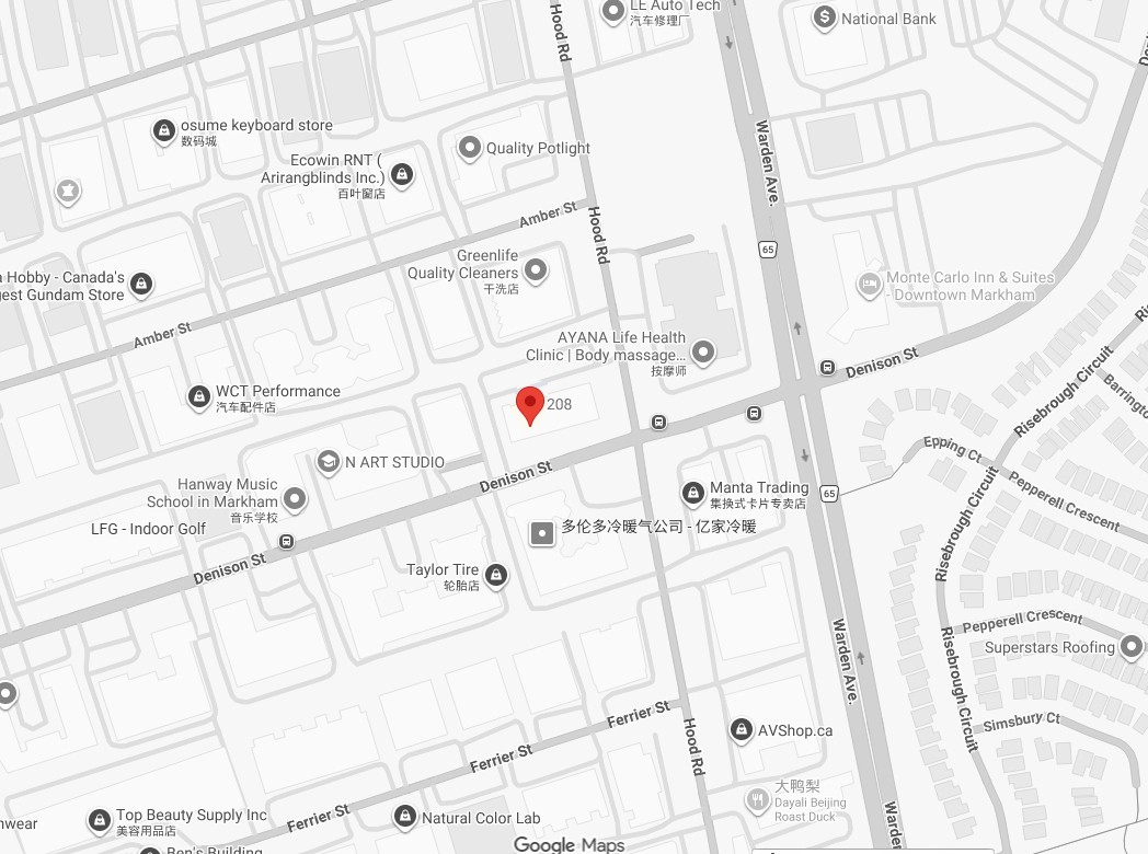 地址:1020 Denison St, Suite 208, Markham, ON L3R 3W5 (Warden Ave / Denison Street 交界)