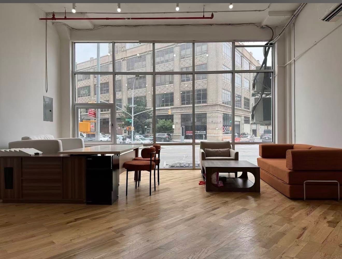 * 一楼临街高顶落地玻璃窗采光好